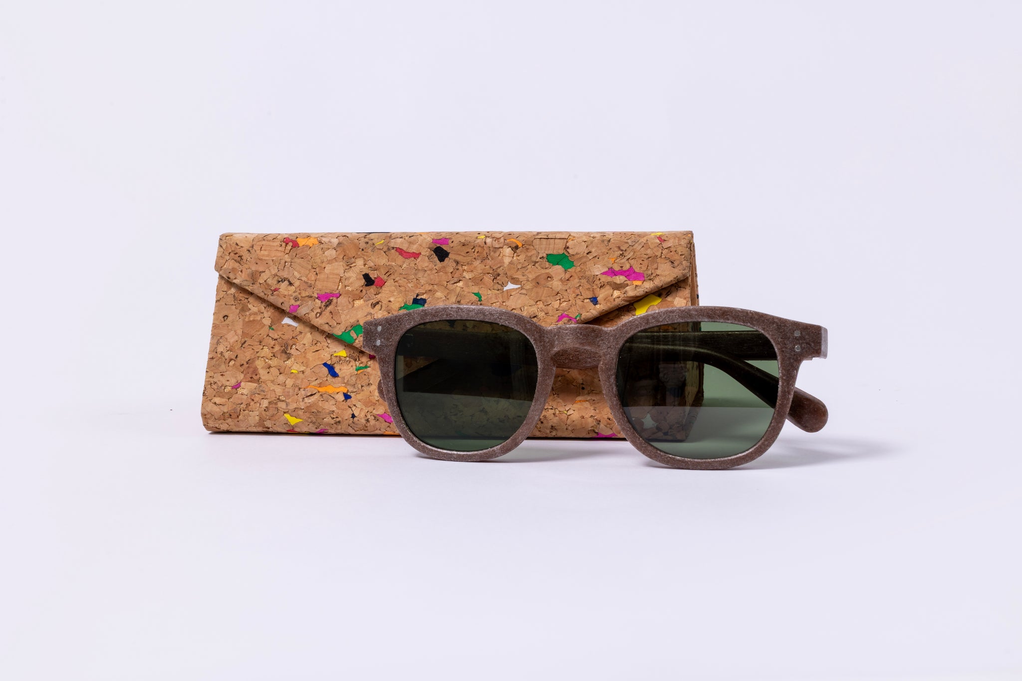 Sản phẩm đi kèm với hộp kính tái chế có thể gập gọn độc đáo và khăn lau kính màu đen.