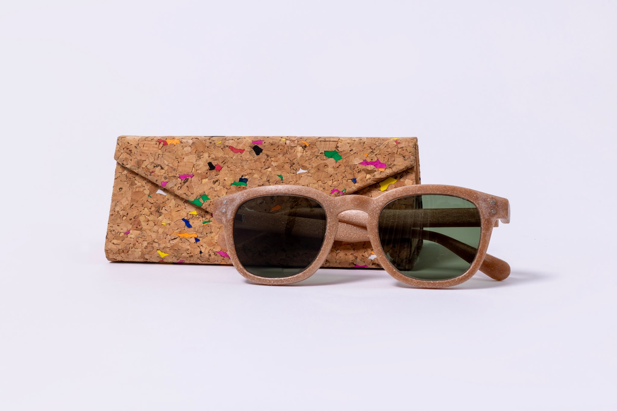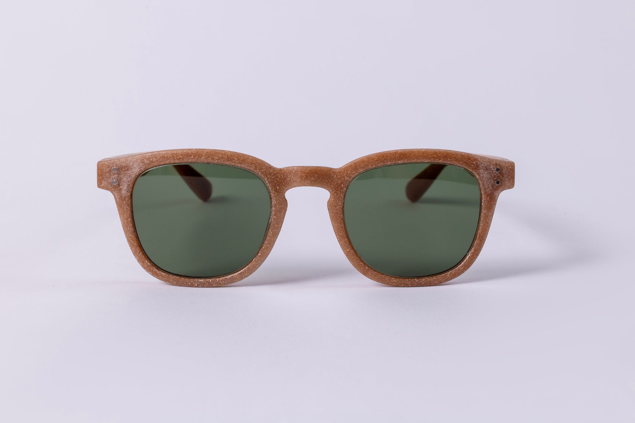 Chiếc gọng gỗ độc đáo này được chế tác thủ công tại Việt Nam, làm từ 30% gỗ thừa tái chế kết hợp với 70% vật liệu sinh học.